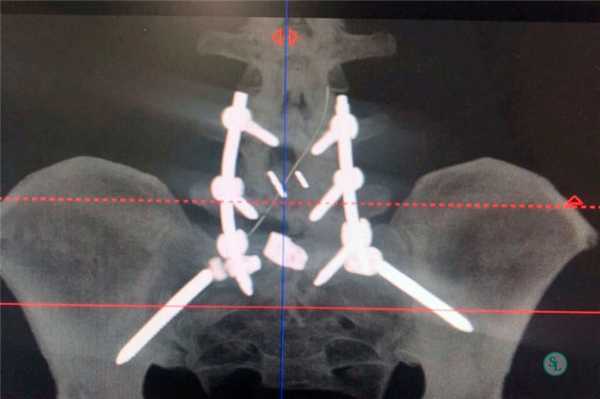 В связи с присутствием наиболее яркой клинической симптоматики, в первую очередь была проведена декомпрессивно-стабилизирующая операция на уровне поясничного отдела позвоночника. После проведенного хирургического вмешательства был отмечен регресс неврологической симптоматики в виде нарастания силы в левой нижней конечности.