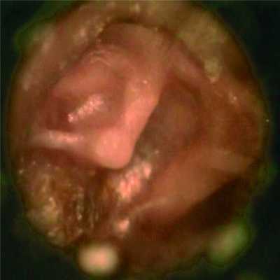 При обострении верифицировать эти изменения затруднительно из-за воспалительных изменений кожи слухового прохода, барабанной перепонки и слизистой барабанной полости (рис. 2).
