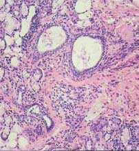 • Гистопатологические признаки: в биоптате малых слюнных желёз определяют более 1 конгломерата мононуклеарных клеток в железистой ткани объёмом 4 мм 3 .