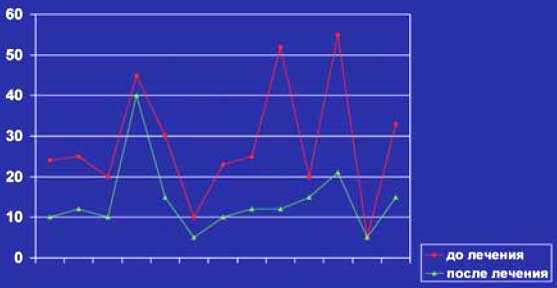 Динамическое наблюдение продолжено за 11 больными с медианой наблюдения 8,5 месяцев. Одна больная погибла от псевдомембранозного колита на фоне необоснованного и длительного применения антибиотиков. Обострения заболевания не наблюдалось. У больной с частичной ремиссией MALT-лимфомы ОУЖ после монотерапии ритуксимабом развился рецидив лимфомы через месяц после окончания терапии. У больной с генерализованным криоглобулинемическим васкулитом через 7 месяцев после проведения 2-х инфузий вновь появились рецидивы пурпуры, в крови стал определяться IgMk. Обе больные повторно пролечены Рт в сочетании с КПТ с хорошим результатом.