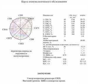 - Состояние клеточного иммунитета. Определяются маркеры иммунокомпетентных клеток, количество разных видов клеток иммунитета и их процентное соотношение. Виды клеток иммунитета - как рода войск: у каждого вида клеток своя работа.