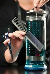 Вы знаете эту голубую жидкость, в которую кладут гребни? Она называется барбицидом, и она необходима для дезинфекции инструментов. Для эффективного уничтожения бактерий, грибков и вирусов используется активный ингредиент алкил-диметил-бензил-аммоний-хлорида. И, самое главное, убедитесь в том, что мастер берет оттуда инструменты, которые собирается использовать для вас.