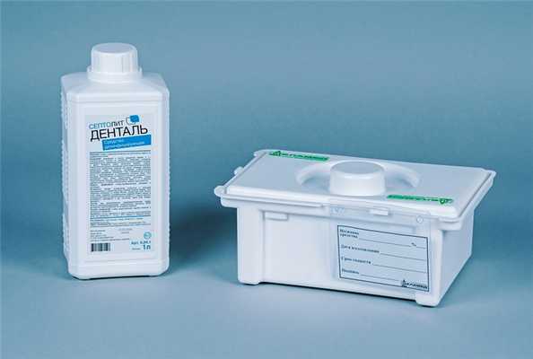 - готовят рабочий раствор дезинфектанта (также можно использовать готовое к применению средство, например, «Септолит Денталь») по инструкции;