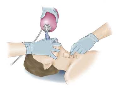 Поскольку насыщение артериальной крови кислородом значительно снижается даже при кратковременной интубации, необходимо в течение 2—5 мин до начала манипуляции проводить вспомогательную или принудительную вентиляцию легких через маску 100% кислородом.