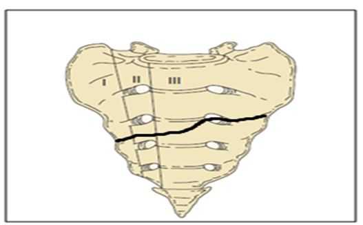· фораминальный перелом - линия перелома проходит через крестцовое отверстие (2 зона);