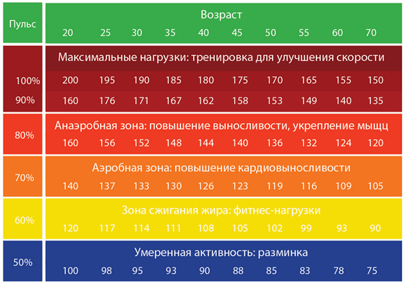 Принято различать следующие зоны пульса: