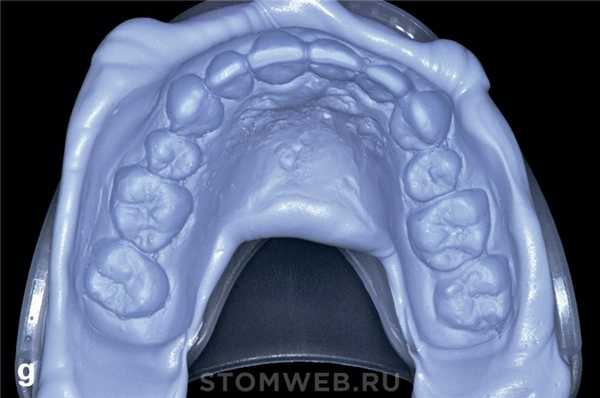 Рисунок 1 (g) Оттиск верхней челюсти, полученный оттискной ложкой с поливинилсилоксаном.