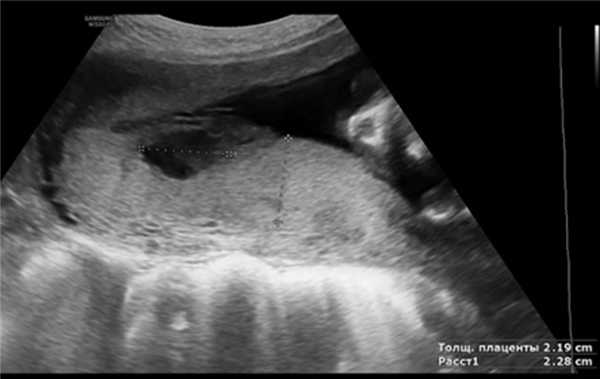 При УЗИ плаценты при инфекционных заболеваниях картина неспецифична: в структуре плаценты определяются мелкие расширения межворсинчатых пространств, утолщение плаценты, преждевременное старение и кальциноз [32].