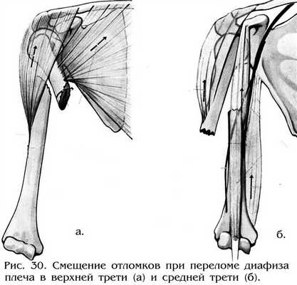 периферический отломок- книзу, кпереди (большая грудная мышца, тяжесть руки).