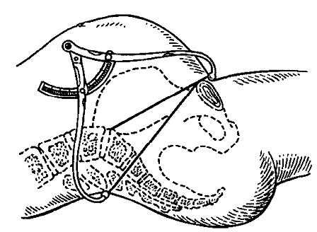Рис 4.13а. Измерение диагональной конъюгаты.
