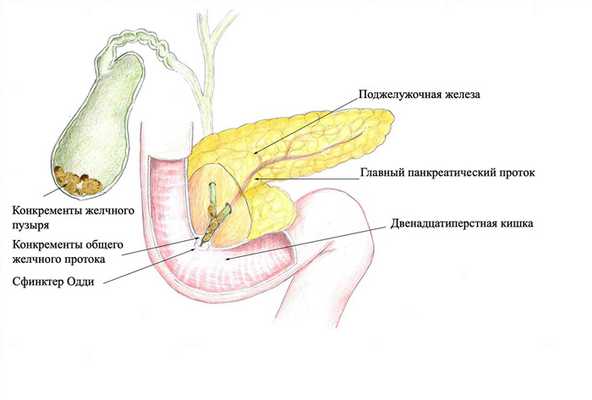 - сужение фатерова сосочка (места впадения в двенадцатиперстную кишку);