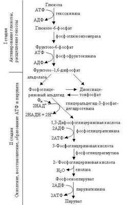 Все реакции, происходящие при гликолизе, можно представить в следующем виде: