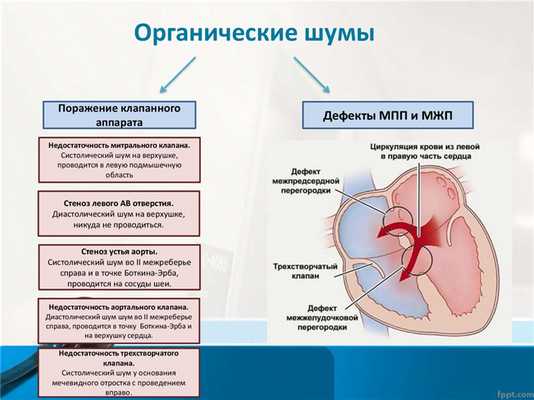 Органические шумы являются наиболее важными, так как являются признаком анатомического поражения клапанного аппарата сердца, то есть являются признаком порока сердца.