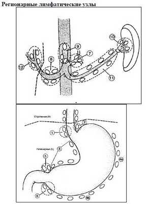 Следует отметить, что различным локализациям первичной опухоли в желудке соответствуют различные этапы метастазирования, что подтверждено проспективными исследованиями по выживаемости групп пациентов при поражении различных групп лимфатических узлов.