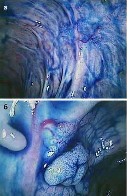 При хромоэндоскопии используются разнообразные способы окрашивания с целью выявления деталей строения СО и сосудистого рисунка подслизистой основы. Это повышает вероятность обнаружения патологических изменений и, следовательно, эффективность диагностики. В настоящее время хромоэндоскопия применяется в двух модификациях: с использованием красителей и без них.