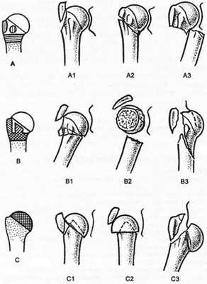 По линии расхождения фрагментов переломы хирургической шейки делят на приводящие (аддукционные) и отводящие (абдукционные).