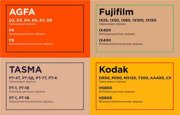 Плакат сочетаний рентгеновских плёнок и усиливающих экранов