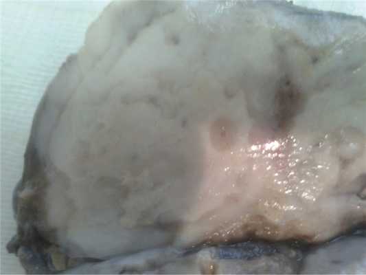 Рис. 1. Макроскопический препарат. НСГ. Легкое: крупноочаговый узел зернистого вида.