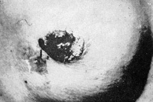 Вторым распространенным заболеванием является рак Педжета молочной железы. Патология отличается злокачественной опухолью, локализованной в области ареолов груди. Болезнь Педжета, подчеркнем, встречается не только у женщин, но и у мужчин.
