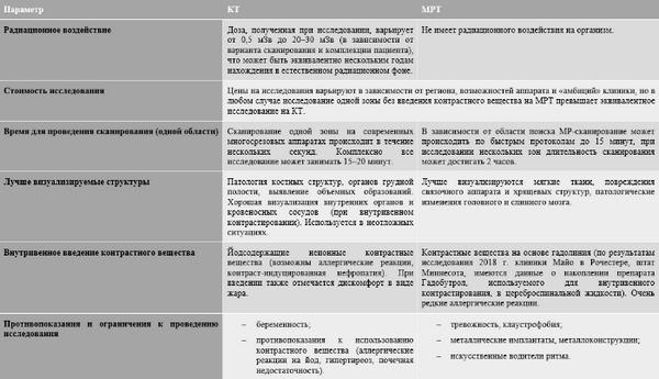 Таблица 1 | Сравнительные характеристики КТ и МРТ