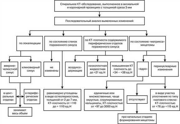 Схема разбора выявленных при нативном КТ-обследовании изменений при грибковом теле.