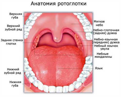 Глотка состоит из трех отделов: носоглотка, ротоглотка и гортаноглотка. Миндалины располагаются в ротоглотке, которая находится в задней части ротовой полости. Выше нее находится носоглотка, и ниже - гортаноглотка.