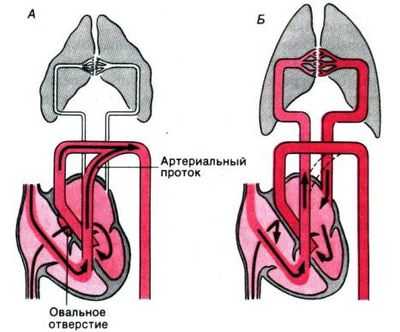отличия кровообращение плода (А) и рожденного ребенка в норме (Б)