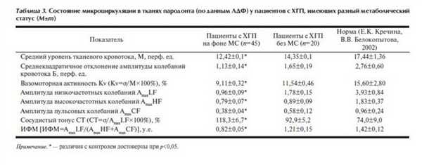 Нарушение микроциркуляции в тканях пародонта у пациентов с хроническим генерализованным пародонтитом в сочетании с метаболическим синдромом