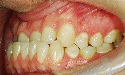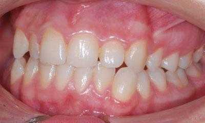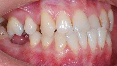Если верхние резцы в результаты обратного перекрытия достают до слизистой нижней челюсти, то на месте контактов возникает хроническая травма. Она ведет к размножению бактерий, пародонтиту, рецессиям и повышению риска онкологии.