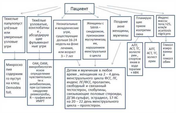 С целью уточнения причины возникновения акне могут быть рекомендованы следующие обследования: