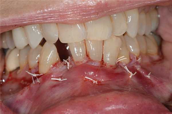 Фото 3. Вид после ушивания. Обратите внимание на достаточный объем преддверья полости рта.