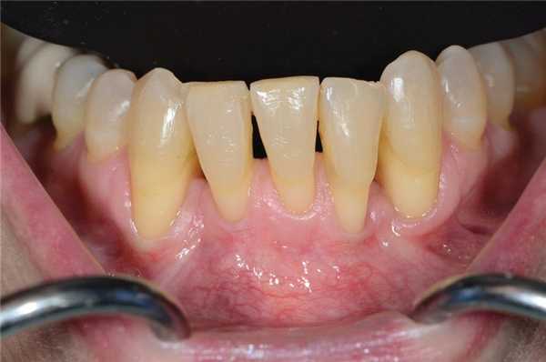 Фото 13. Конечный результат после ХООЛ: дефицит прикрепленных десен при достижение нормальной позиции зубов.