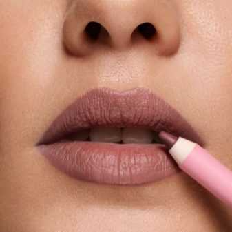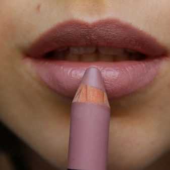 - Тем красавицам, кто не любит пользоваться помадами, а предпочитает блеск или бальзам, стоит выбирать карандаш nude, максимально точно совпадающий с оттенком губ. Очень важно не использовать бежевые оттенки, которые сходны с кожей: это скрадывает края губ и уменьшает всякий объем;