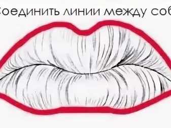 - Разметка середин губ - верхней и нижней. Тонкими, аккуратными линиями отмечается уголок сверху и линия снизу.