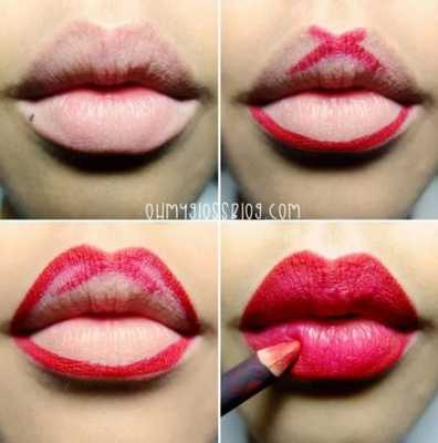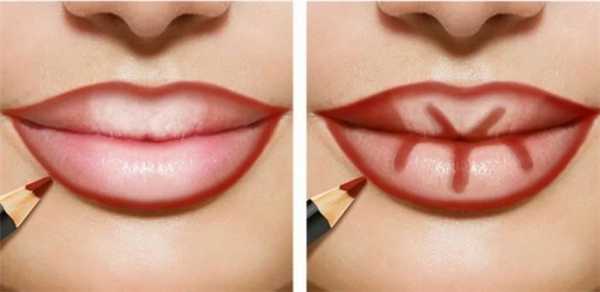 Контурный карандаш не даёт помаде стираться по краю губ и течь, а также помогает помаде дольше оставаться на губах (это в том случае, если вы сначала накладываете контур, а затем помаду). Контурный карандаш имеет большое значение. Чтобы губы выглядели полнее, выбирайте карандаш белого или телесного цвета. Тёмный карандаш зрительно уменьшает объём губ. Когда помада нанесена, для увеличения объёма губ добавьте в центр нижней губы капельку блеска или светло-перламутровой помады.