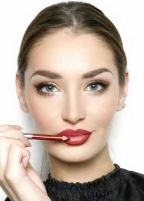 - Для приятного внешнего вида и должного эффекта карандаш на губах должен быть едва заметным. Это достигается благодаря использованию изделия, максимально близкого к тону помады или блеска. Если пигмент будет сильно отличаться, то вместо объема и целостного образа получится противоположная картина.