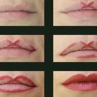 Чтобы губы казались объёмными, используются более толстые линии в прорисовке контура. Если же натуральный объем губ вполне устраивает, то лучше ровно и аккуратно нанести окантовку, стараясь получить оптимальный результат.
