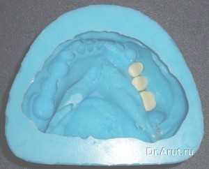 Первоначальные этапы ничем не отличаются от технологии изготовления съёмных пластиночных протезов.