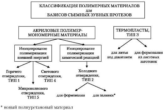 Схема 13.2.Классификация полимерных материалов для базисов съемных зубных протезов (в соответствии с международным стандартом ? 1567 и ГОСТ Р 51889-2002)