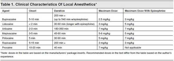 Таблица 1 Физико-химические и фармакологические свойства местных анестетиков
