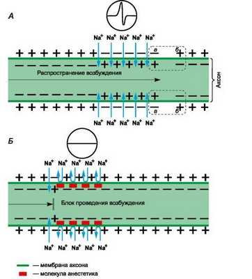 Угнетая немиелинизированные волокна типа С, местные анестетики снимают прежде всего болевую чувствительность, затем обонятельную, вкусовую, температурную и, в последнюю очередь, - тактильную; ощущение прикосновения и давления проводится по миелинизированным волокнам типа А. Двигательные волокна, имеющие большой диаметр, сравнительно устойчивы к действию этих препаратов, поэтому снятие чувствительности не сопровождается параличом мышц.