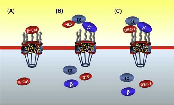 А — рецептор-независимый импорт (бета-катенин взаимодействует с белками NPC напрямую).
