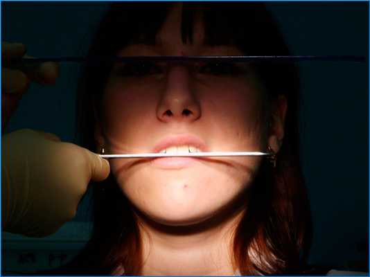 Существует метод закрывания рта во время касания кончиком языка мягкого неба, прикусывания боковыми участками зубных рядов пальцев врача, которые во время прикусывания убираются в стороны.