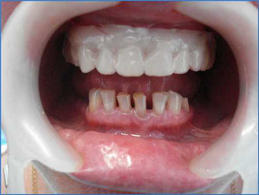 К четвертой группе дефектов относится случай с полным отсутствием зубов на обеих челюстях.