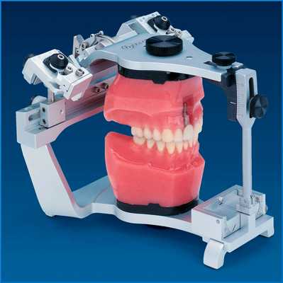Финальным этапом работы является гипсовка в артикуляторе, то есть специальном приборе, позволяющим зафиксировать элементы неподвижно. Благодаря ему сохраняются собранные данные на всем протяжении изготовления протеза.