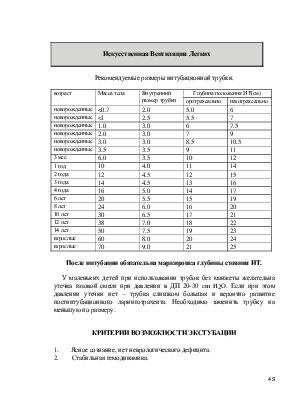 У маленьких детей при использовании трубок без манжеты желательна утечка газовой смеси при давлении в ДП 20-30 cm H2O. Если при этом давлении утечки нет - трубка слишком большая и вероятно развитие постинтубационного ларинготрахеита. Необходимо заменить трубку на меньшую по размеру.