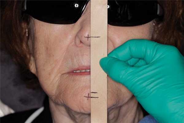 Фото 5. Измерение вертикальной составляющей прикуса в состоянии окклюзии и высота прикуса в состоянии покоя.