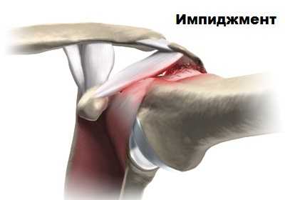 Если пространство между акромионом и плечевой костью в связи с различными причинами сужается, а движения конечности происходят снова и снова изо дня в день, манжета может ущемляться. Подобное ущемление происходит при импиджмент синдроме.