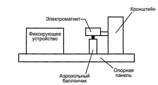 C целью максимального приближения условий моделирования повреждений глаз аэрозолями газовых баллончиков к реальным условиям в наших исследованиях, выполненных под руководством проф. P. А. Гундоровой, использован специальный аэрозольный дозатор конструкции В. E. Хотим [Хотим В. E., 1996]. Указанное устройство состоит из трех основных элементов: таймера, электромагнита и опорной панели (рис. 2.1). Таймер способен выдерживать точную временную экспозицию длительности нажатия на пусковую головку лапки электромагнита в диапазоне 0,1—10 с. Опорная панель имеет измерительную шкалу и станок для крепления головы животного. Это позволяет выдерживать фиксированную дистанцию выброса аэрозольной струи — 0,1 м. При выборе такой дистанции мы руководствовались данными отечественной и зарубежной литературы. Время нажатия на пусковую головку составляло 1 с и соответствовало инструкциям-рекоменда- циям фирм — изготовителей аэрозольных баллончиков. Эксперименты выполняли в помещении, где исключались сквозняки, при одинаковой температуре и влажности окружающего воздуха.