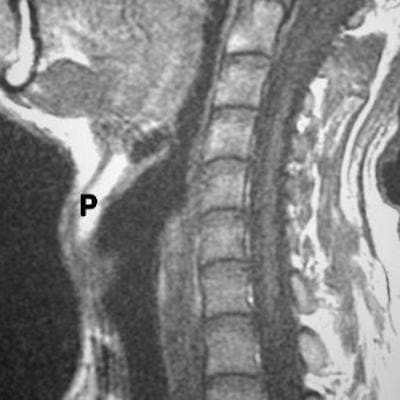 На фото МР-снимок органов лица, шеи и соответствующего отдела позвоночника
